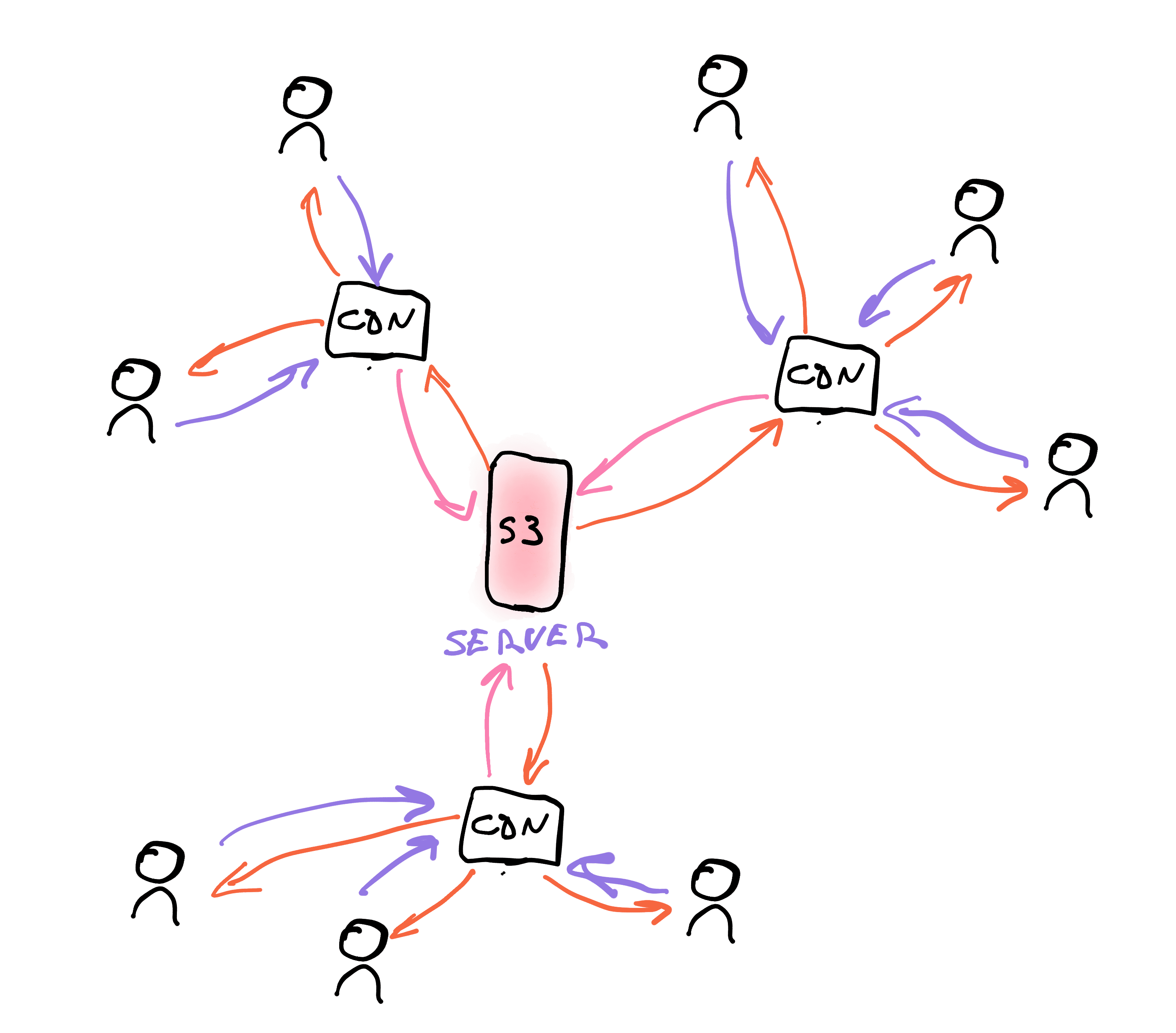 Where S3 serves files from a central location, a CDN serves those same files from as close to the end user as possible. That speeds up your website by reducing latency.
