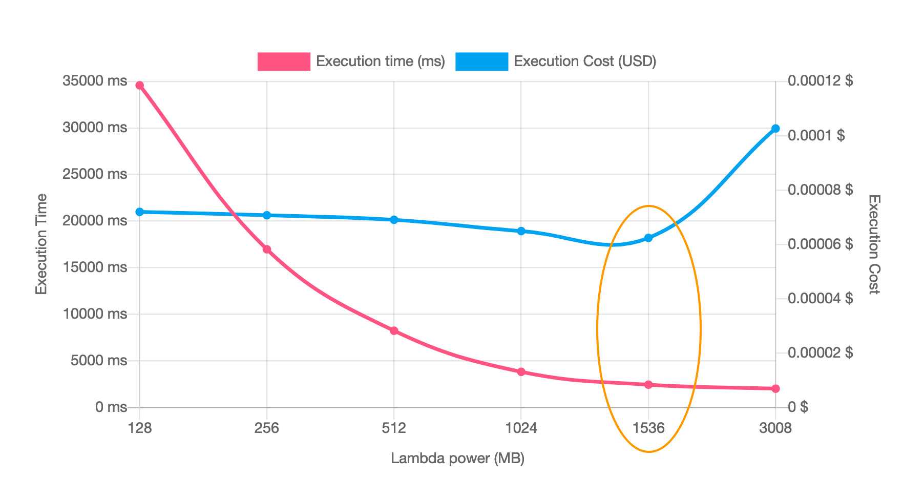 Example graph from AWS Lambda Power Tuning